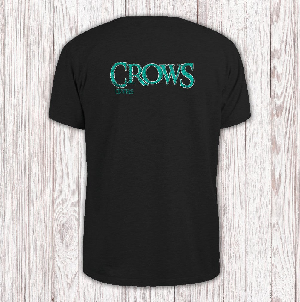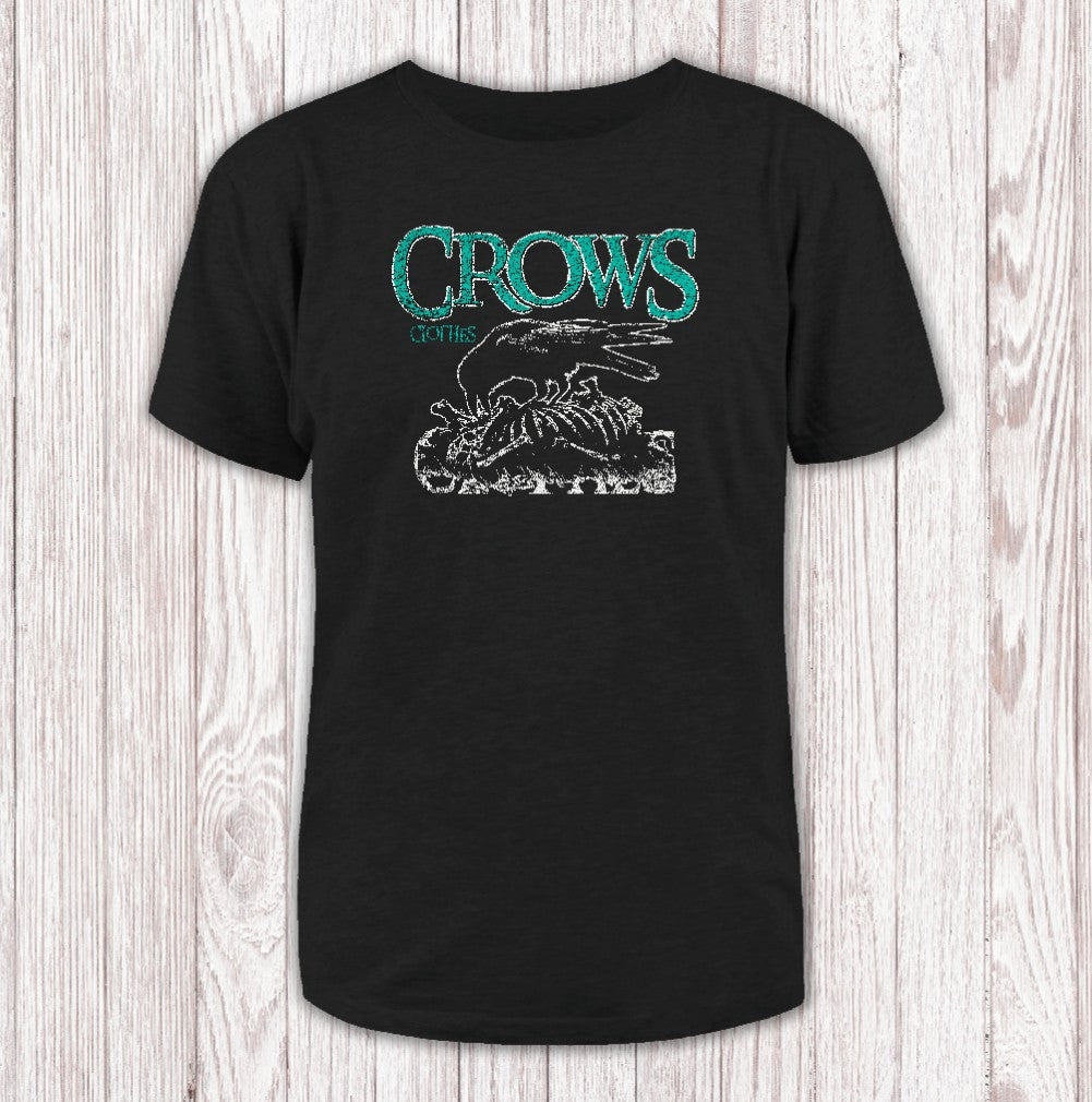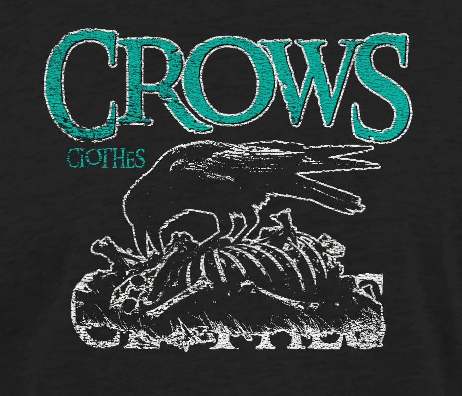 This t-shirt doesn’t just ask for your attention—it snatches it. “Crows Clothes” screams across the front, but it’s the artwork that really hooks you: a crow, perched on a twisted pile of bones and a cracked ribcage. There’s something raw and unsettling about the whole thing. Dark, moody, and impossible to ignore. The art and the letters hit you together, daring you to look closer.