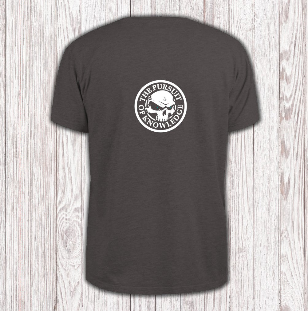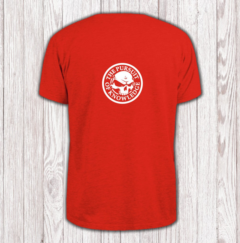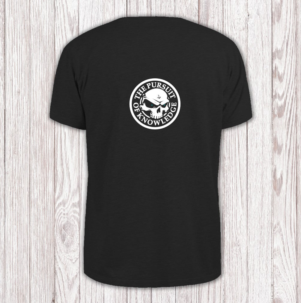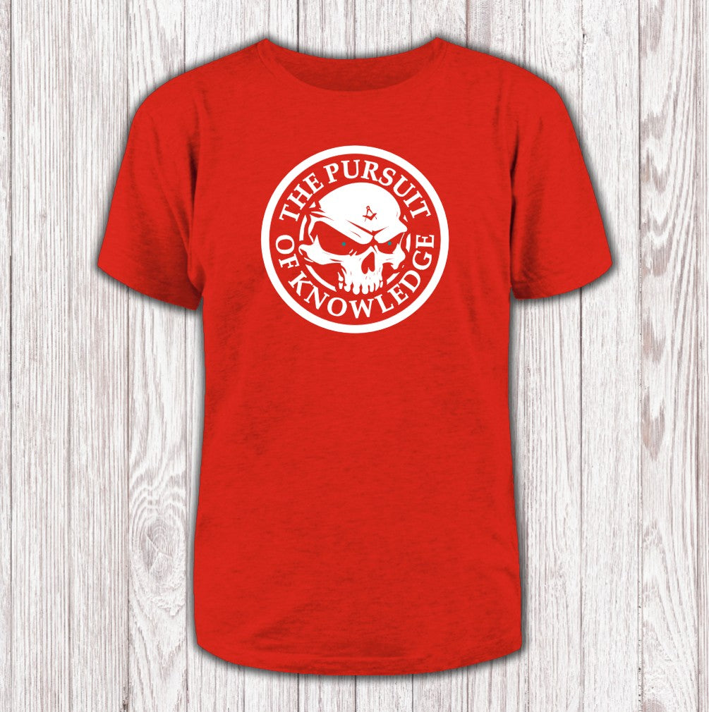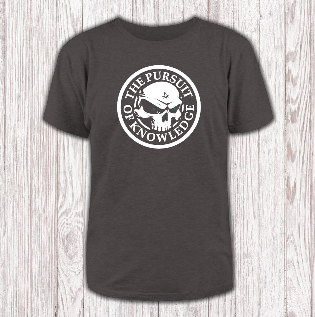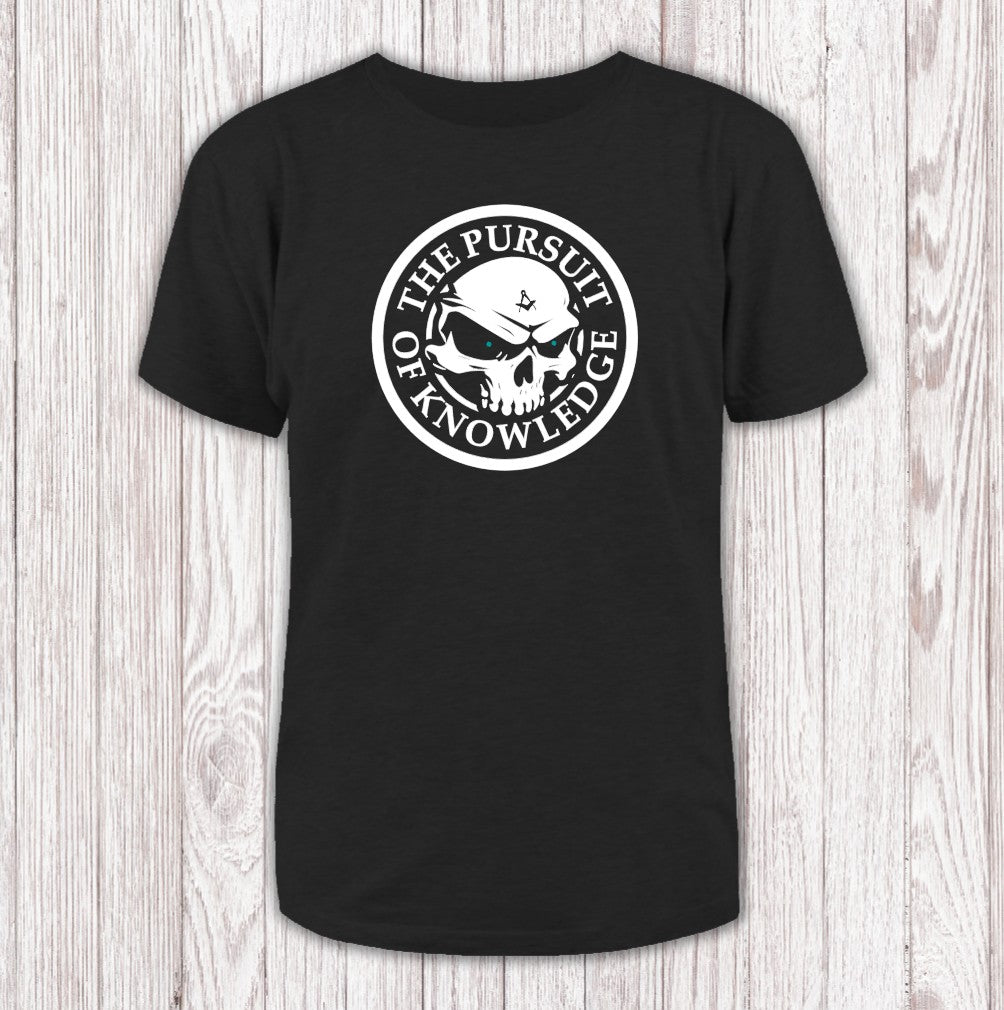 This T-shirt design seamlessly blends contemporary fashion with time-honoured Masonic symbolism. At its heart is a striking, eye-catching logo that immediately draws attention, while the phrase, "in the pursuit of knowledge," runs across the fabric as both a statement and an invitation. The result is a piece that doesn’t just look good—it sparks curiosity!